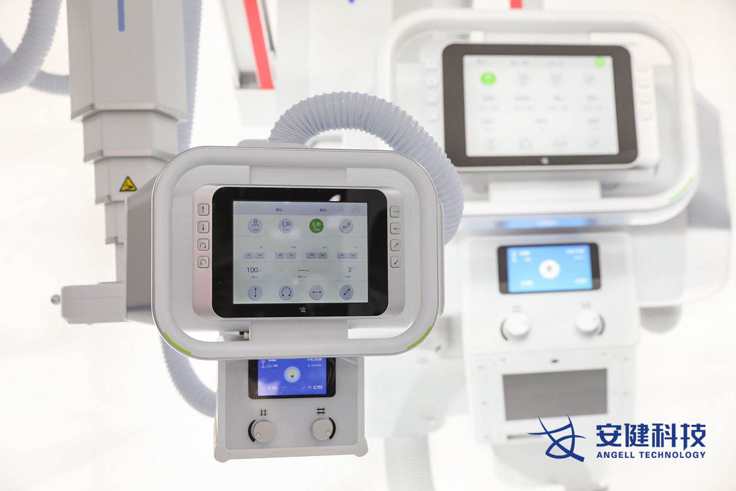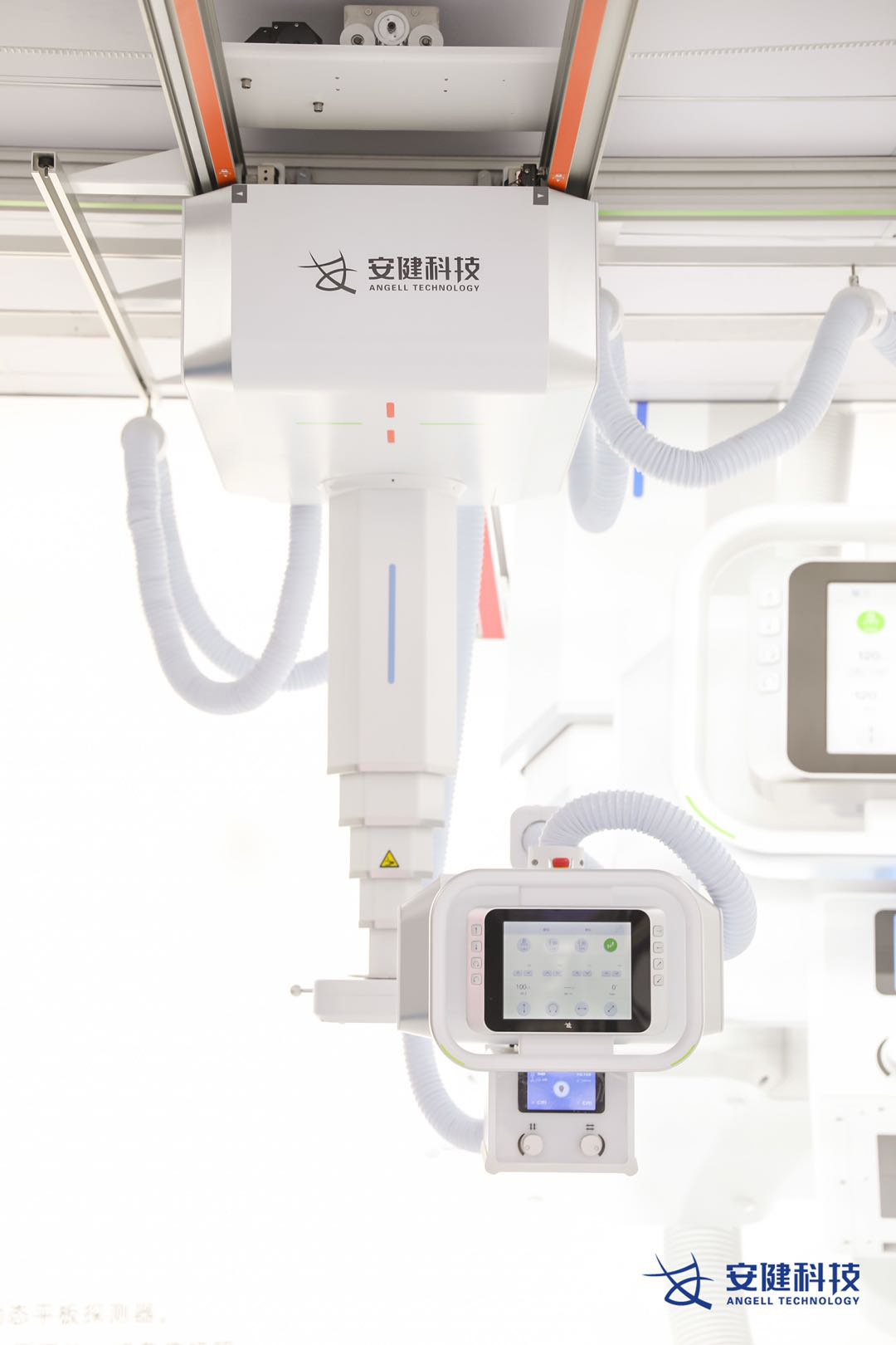 “珠穆“悬吊动态DR通过一系列人性化设计,让放射检查更加轻松高效。机架内置语音对讲系统,操作医师与患者可无障碍交流,提升了摆位、摄片的安全性与效率;探测器和球管可降至紧贴地面,轻松应对下肢多角度摄影与儿童摄影;配备9.7英寸智能触控大屏,可实时触屏操控设备运动、调整各类检查参数,并同步显示患者信息、曝光参数及摆位提示;配备无线遥控器,全程支持隔室遥控操作,可避免特殊时期操作医师与患者的接触。