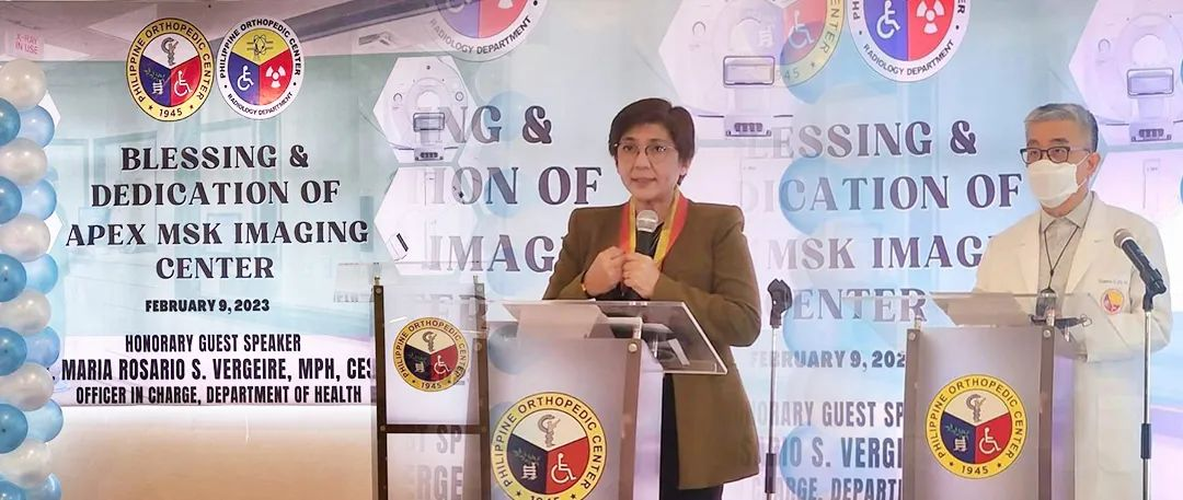 2月9日菲律宾骨科中心大楼正式剪彩投入使用,卫生部负责人Maria Rosario Vergeire女士到场并祝贺开幕!尊龙凯时人生就是博科技“悦画”移动C形臂系列也正式走进菲律宾最具权威的骨科医院。
