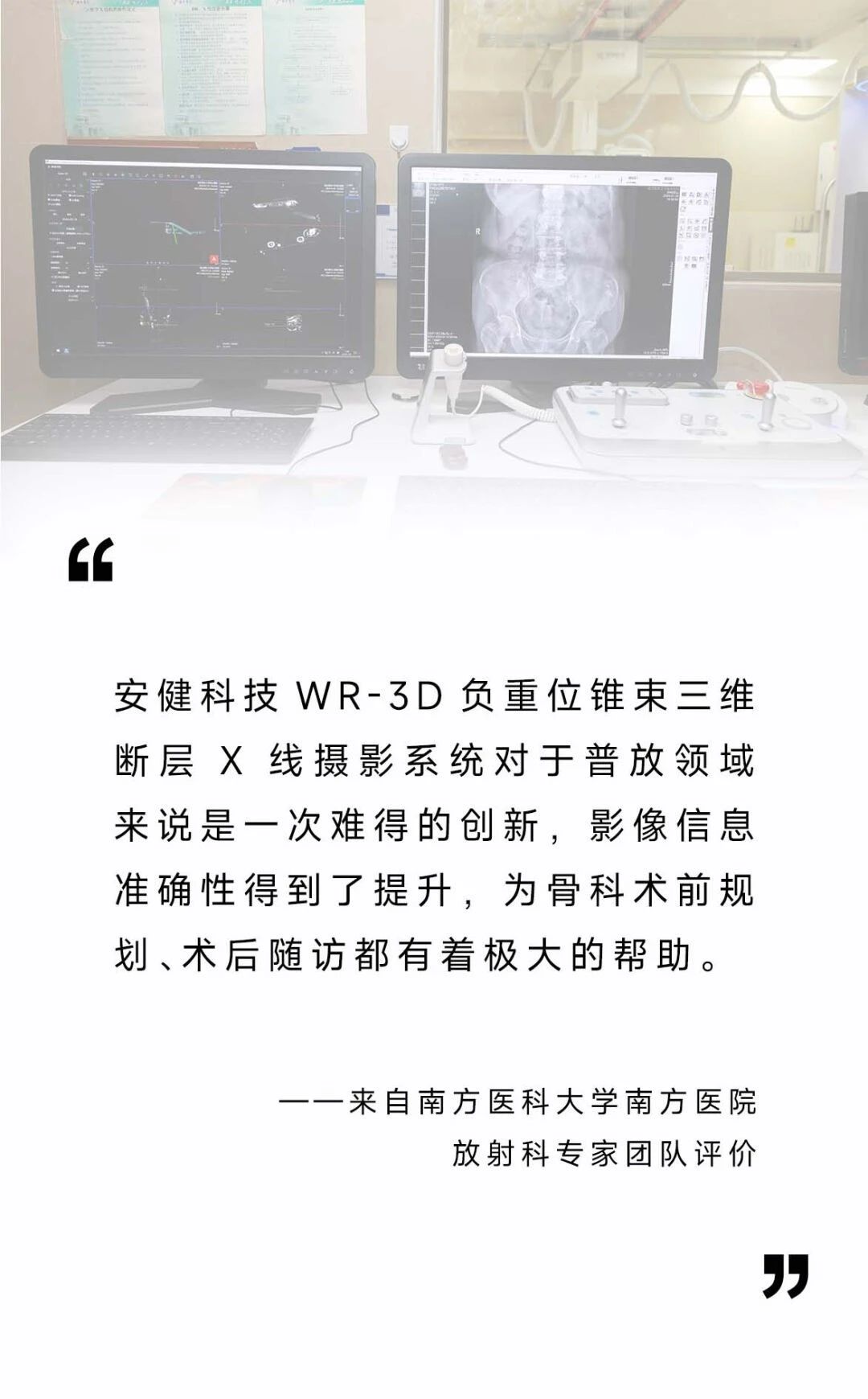 WR-3D负重位锥束三维断层X线摄影系统的科研价值和教学意义,获得南方医科大学南方医院放射科主任、骨科主任以及南方医科大学放射学教授一致认可。