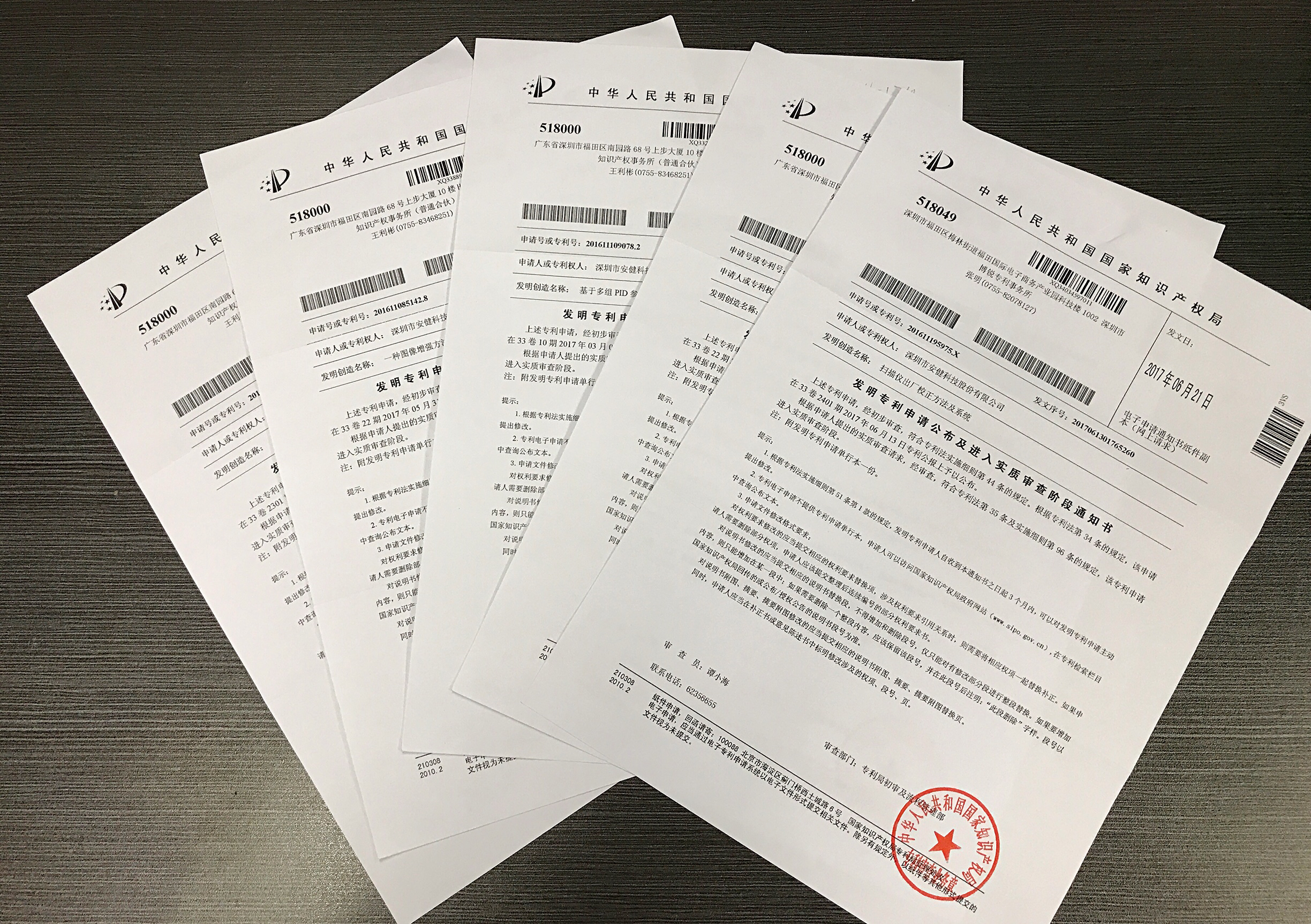 在公司研发中心全体人员的共同努力下,2017上半年研发成果收获颇丰。仅半年时间,共获得专利证书8项,其中有5项发明专利。另外有5项发明专利进入实审阶段。